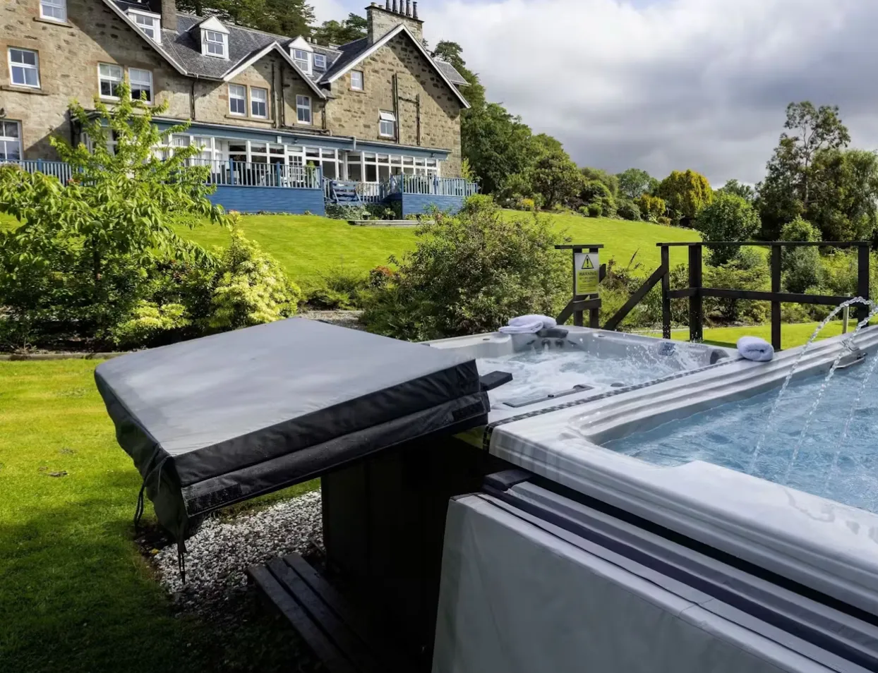 Unwind in the hot tub & swim spa
