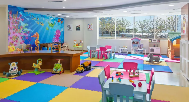 The hotel offers an indulgent escape with a private beach, indoor and outdoor pools, a lazy river, a kids’ club and a fully equipped fitness centre, creating fun and relaxation for the whole family.