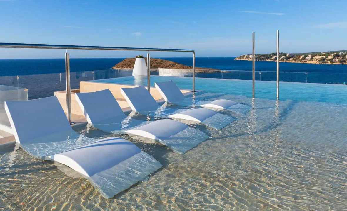 Nestled within the coastal beauty of Palmanova, the Elba Sunset Mallorca & Thalasso Spa offers a beguiling 4-star retreat, combining elegance and contemporary flair. The rooftop infinity swimming pool allows guests to bask in breathtaking panoramic Mediterranean views while reclining on Balinese beds.