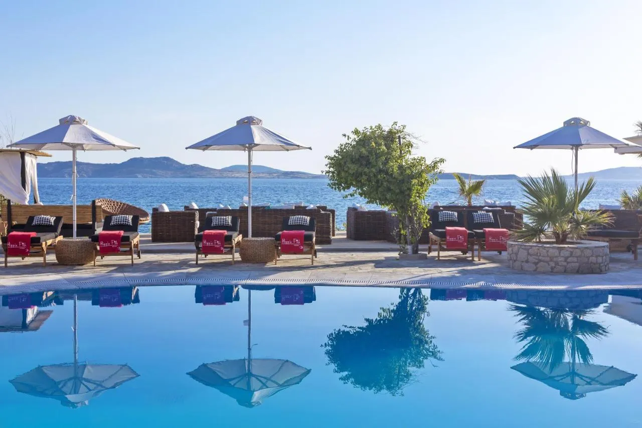 Hippie Chic Hotel is an exquisite beachfront sanctuary nestled on the shores of Agios Ioannis in Mykonos, offering an unparalleled blend of traditional Cycladic charm and modern luxury.