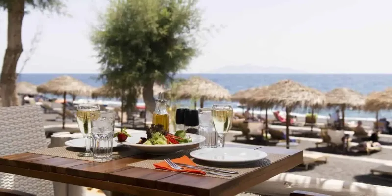 Distance from the beach: Directly located on Kamari Beach.
