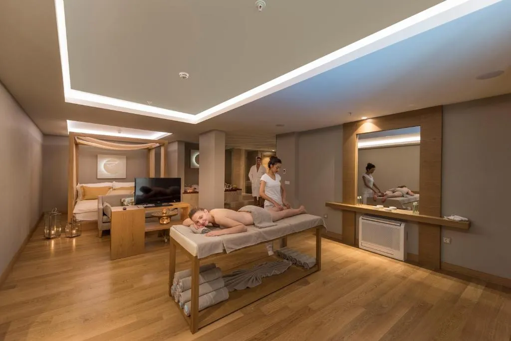 Pamper yourself at the Blue Spa, where tranquil massages and therapies await to rejuvenate your body and soul. Stay active at the modern fitness centre, or simply relax on the hotel's private beach, enjoying the Mediterranean sun.