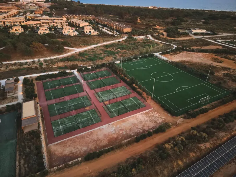 Premium wellness amenities include multiple sports courts for tennis, padel, football and volleyball, as well as rejuvenating yoga sessions and deeply relaxing spa treatments.